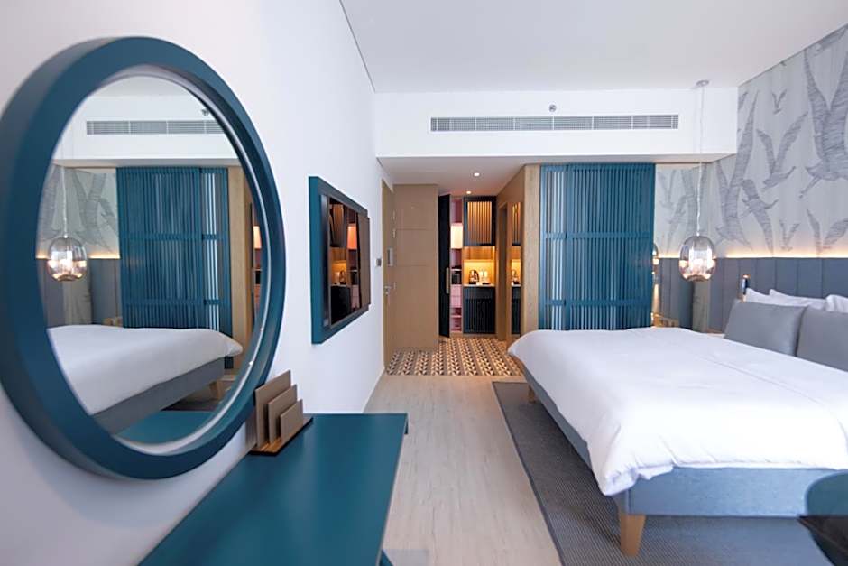 At C Central Hotel and Resort The Palm, adventure awaits beyond your luxurious suite! Picture yourself starting your day with a refreshing dip in the adults-only infinity pool, where the water seemingly spills over into the azure sea. As you don your sunnies and unwind on a complimentary beach chair, you can let your worries float away while sipping on a tropical cocktail. Can't resist the heat? Dine at Waves Restaurant, where the vibrant vibes and enticing aromas of Indian, Italian, Mediterranean, and Middle Eastern cuisine will tantalize your taste buds day in and day out.